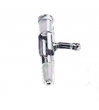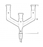 Переход с одной пришлифованной горловиной 19/26, одним керном 29/32 и изогнутым вниз отводом под резиновую трубку представляет собой соединительный элемент для сборки различных лабораторных приборов. Изделие применяется, когда необходимо перейти от взаимозаменяемого конуса одного размера к другому..