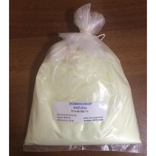 Люминофор ФКП-03К применяется в качестве основы нерадиоактивных люминесцентных красок в различных знаках и указателях,  маркировке наиболее важных приборов и управляющих элементов, при определении микротрещин и микродефектов (в виде паст), окраске стеновых панелей и элементов зданий, в живописи и полиграфии, при оформлении офисов, витрин и т.д., в качестве наполнителей при изготовлении пластмасс, пленок, искусственных волокон, кож, резины, тканей, керамики и разнообразных изделий на их основе.